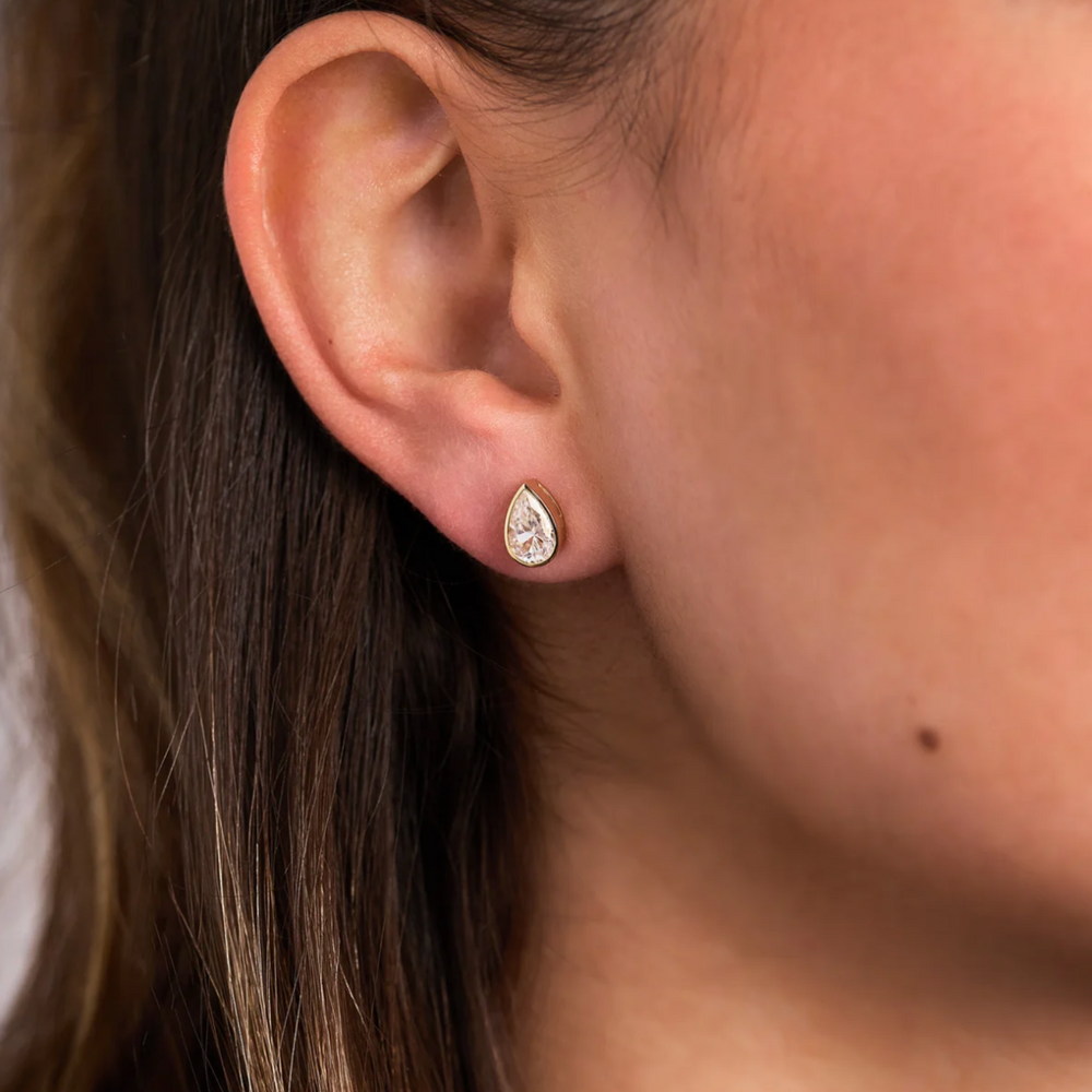 2.00ctw Pear Shape Diamond Lab Grown Bezel Set Stud Earrings
