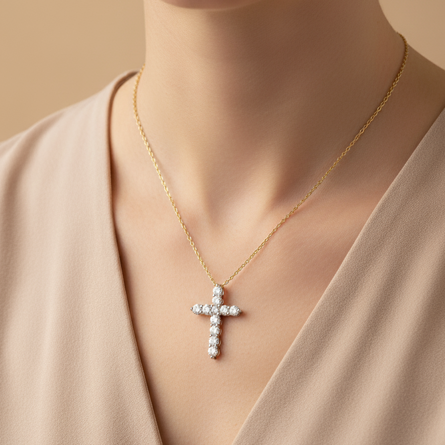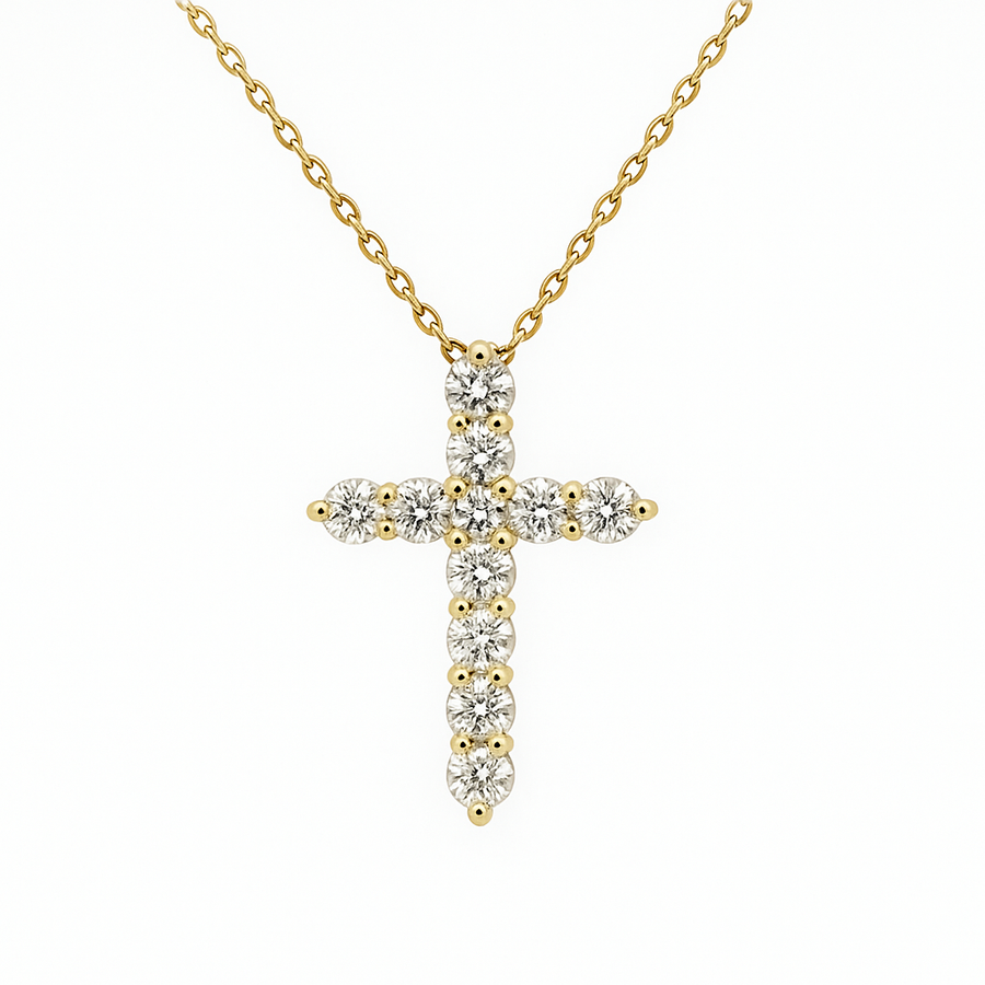 2.05ctw Diamond Cross Yellow Gold Necklace - Lab Grown