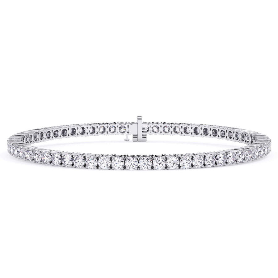 This 5.00ctw Round Lab Grown Diamond Bracelet boasts impressive diamond specifications, including a weight of 5.00ctw, a round shape, and a G-VS2 quality. The 14kt white gold bangle is designed in a stylish bracelet style and measures 7 inches in length.